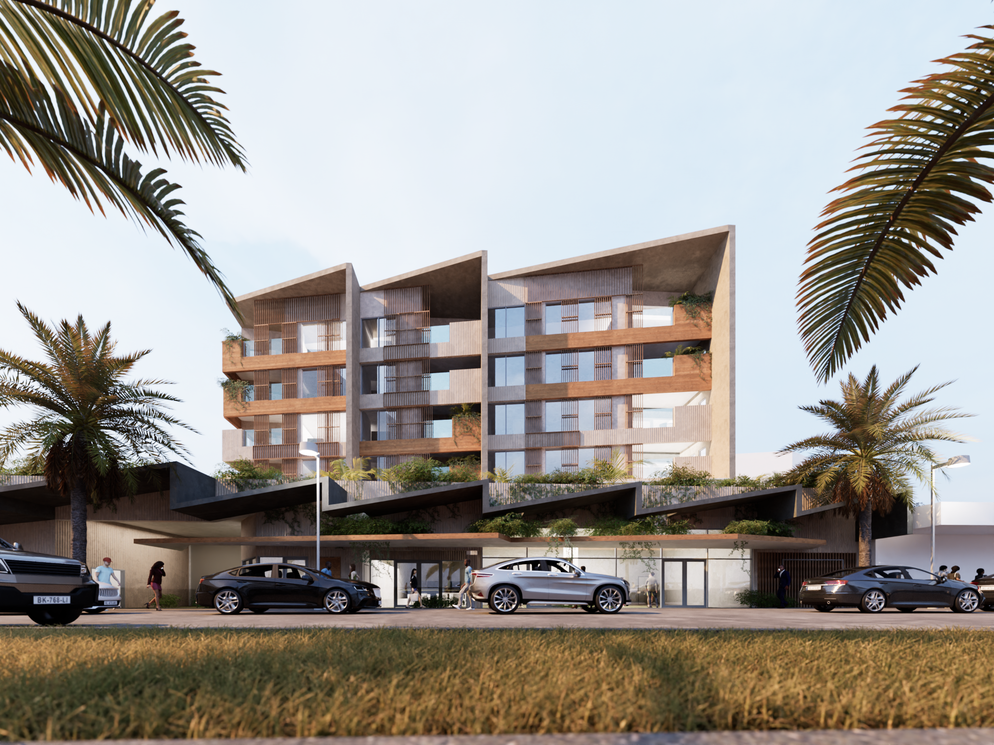 A compact and efficient foyer design, with direct street access allows for an activated retail street frontage, complemented by a natural shading, a green street awning and surrounding landscaping.