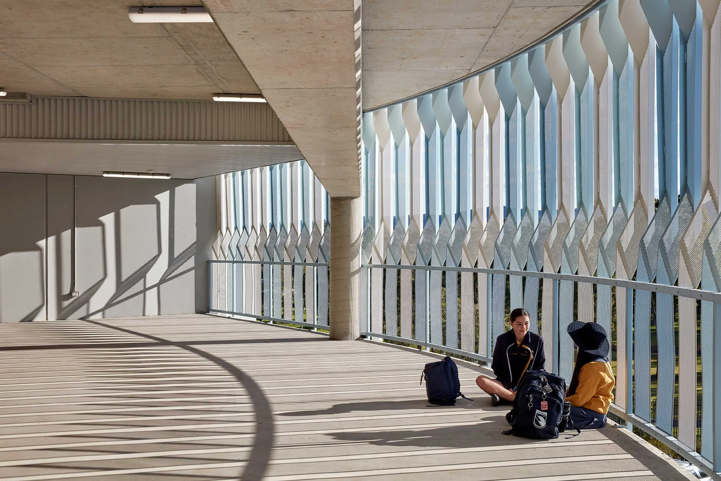 The design supports a forward-thinking pedagogy with a focus on practical learning for real-world jobs. Across the campus, flexible, collaborative spaces provide opportunities for learning, formal and casual gathering, and socialising.